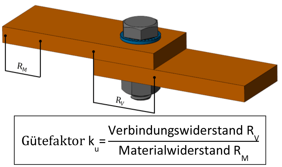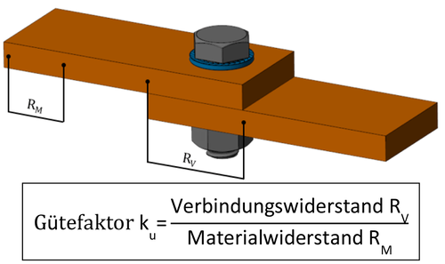 Die Hauptaufgabe einer elektrischen Verbindung ist die Übertragung von Strom. Ausschlaggebend für die Beurteilung der Verbindungs- bzw. Verschraubungsqualität ist der Gütefaktor ku. Dieser stellt das Verhältnis von dem Widerstand in der Verbindungsstelle, zum Widerstand in der Stromschiene dar.